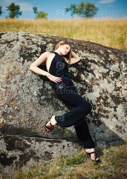 Девушка лежит на камне