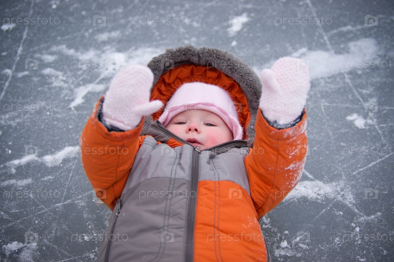 Маленькая девочка лежит на льду