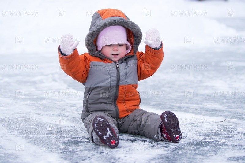 Маленькая девочка сидит на льду