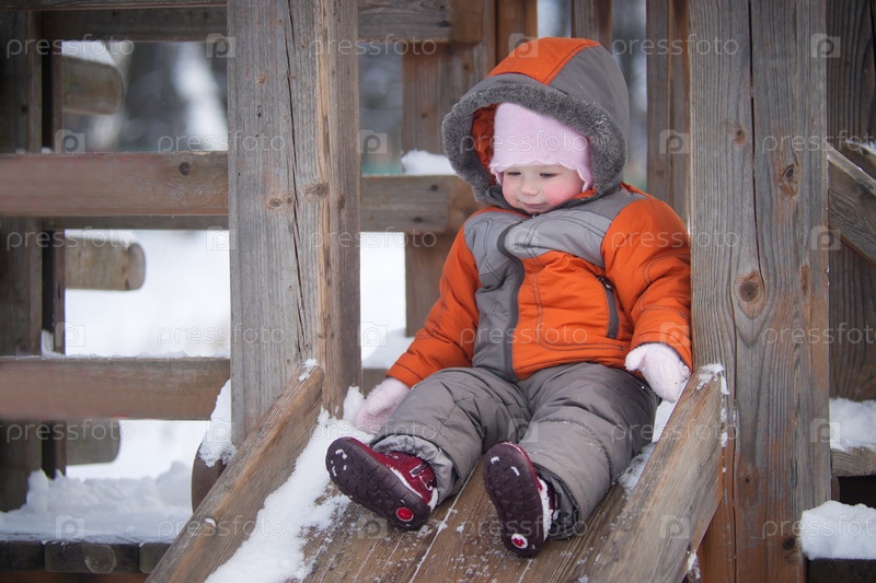 Маленькая девочка катается с деревянной горки