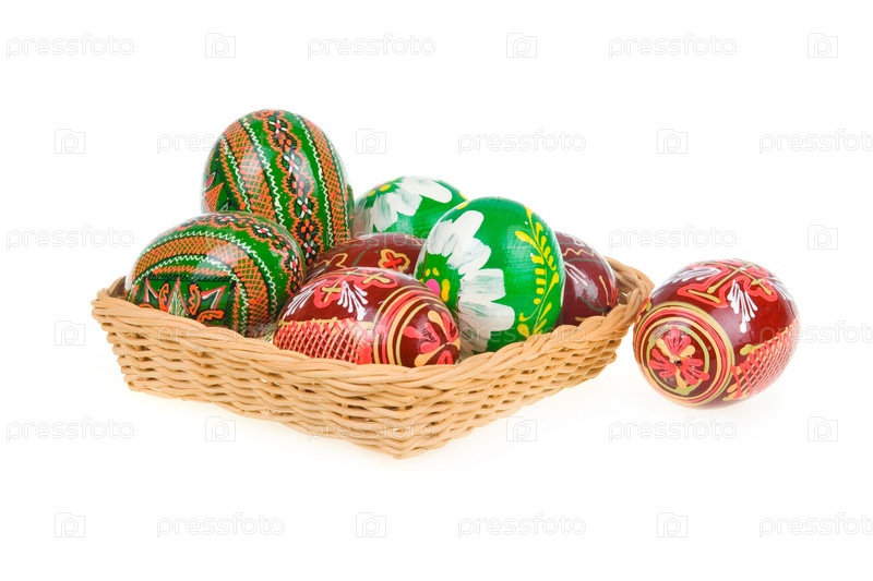Пасхальные яйца в плетеной корзинке