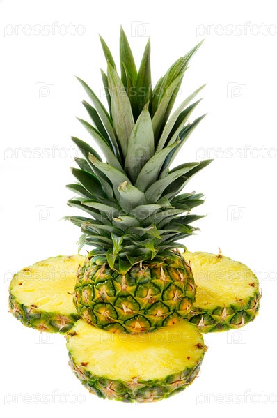 Вырезанный ананас, изолированный на белом фоне