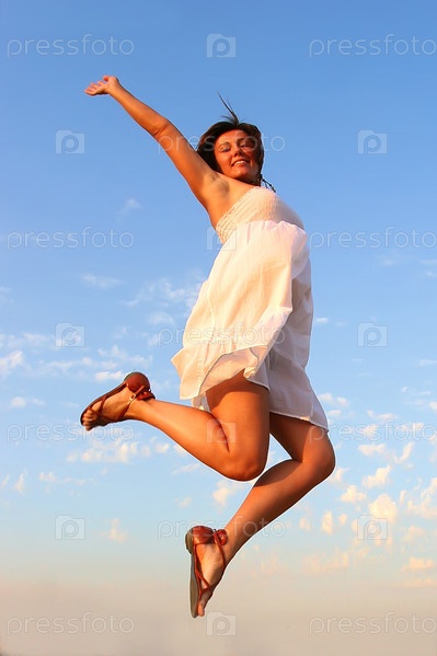 Девушка в легком платье на фоне неба