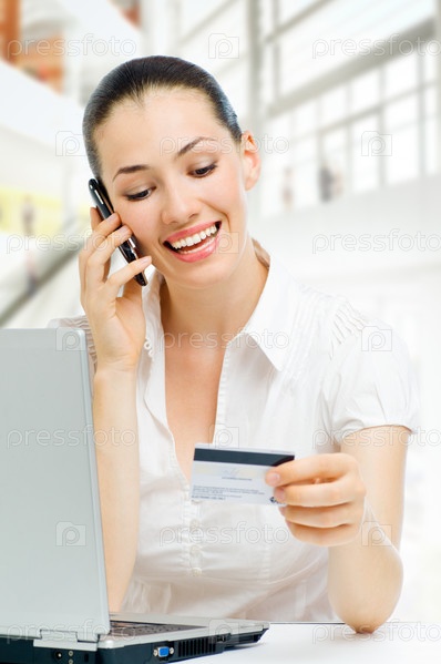Портрет молодой женщины, торгующей в Интернете