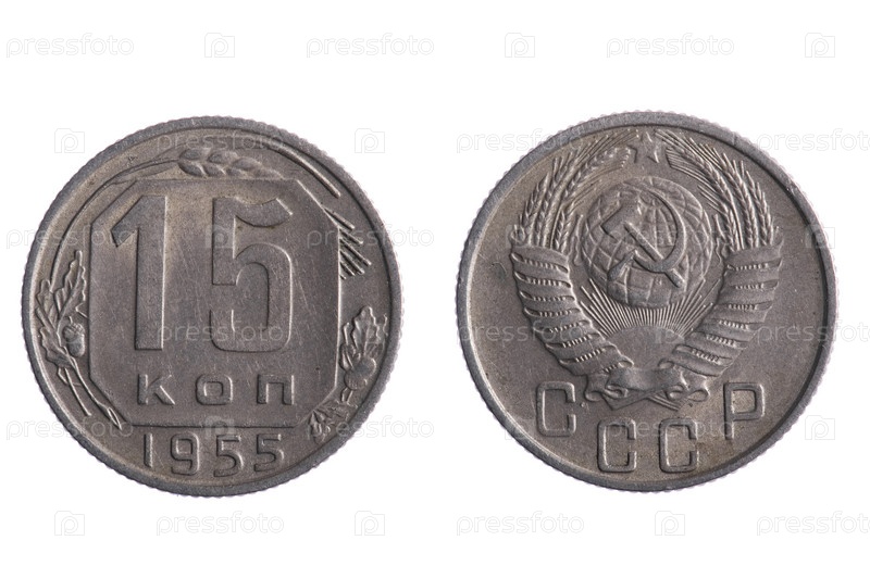 Монеты СССР на белом фоне
