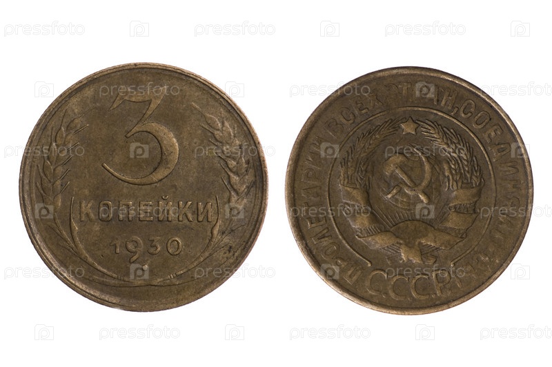 Монеты СССР на белом фоне