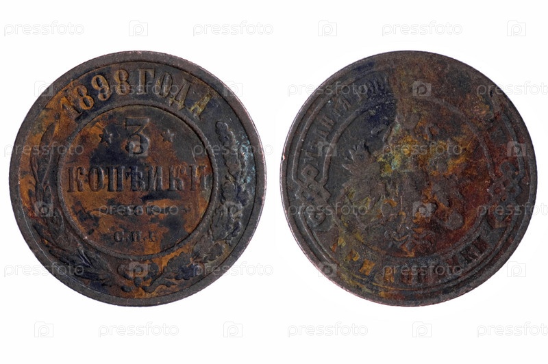Старые монеты императорской России на белом фоне