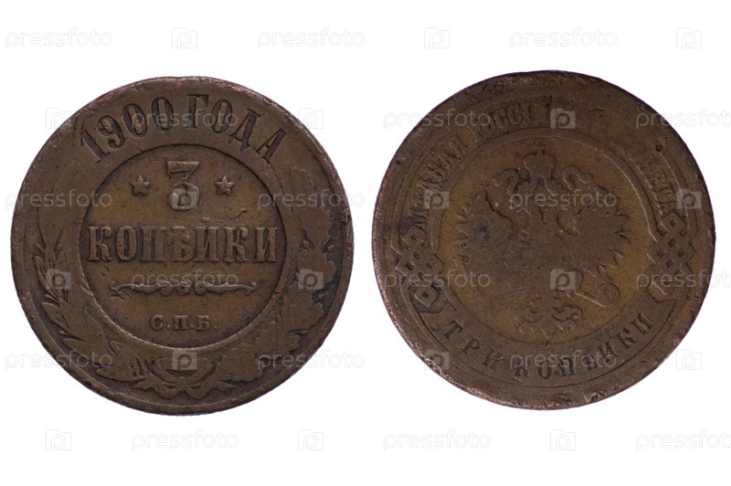 Старые монеты императорской России на белом фоне