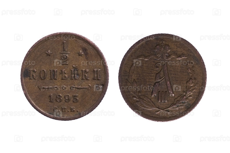Старые монеты императорской России на белом фоне