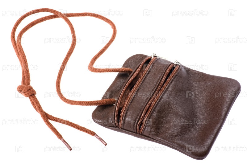 Коричневый кошелек на белом фоне