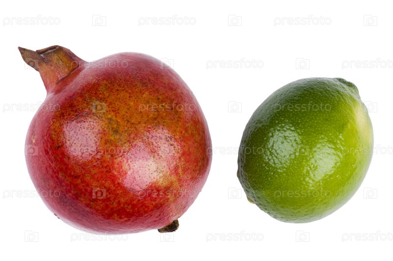 Гранат и лайм на белом фоне