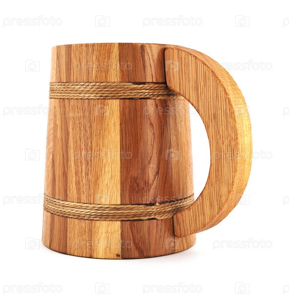 Деревянная пивная кружка на белом фоне