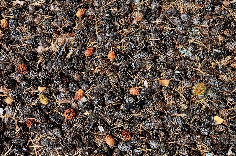 Земля, покрытая опавшими кедровыми шишками