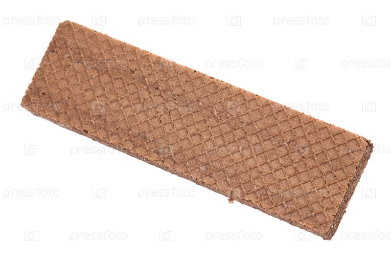 Прямоугольная шоколадная вафля на белом фоне