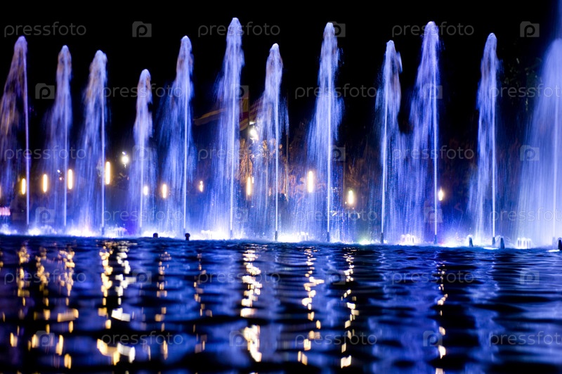 Фонтан с ночной подсветкой в Испании, город Салоу