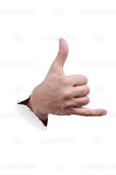 Жест руки в бумажной дыре