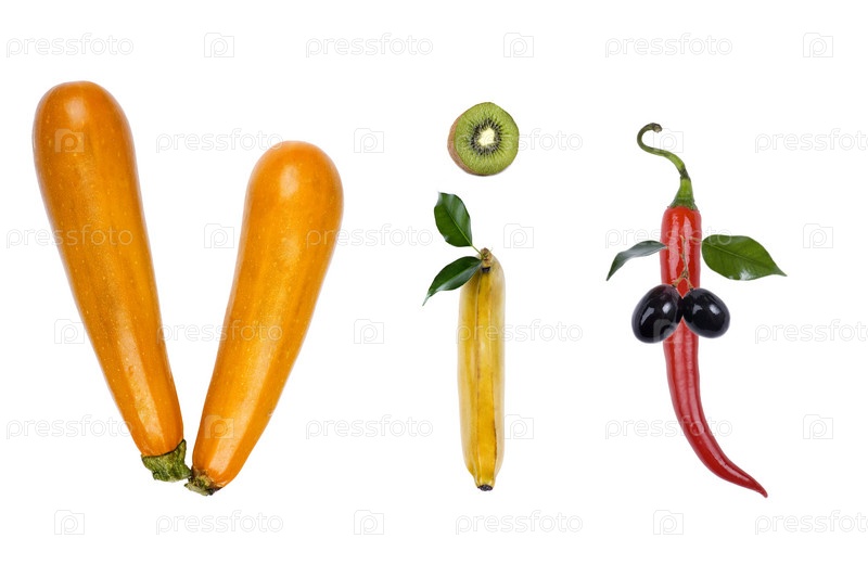 Овощи и фрукты на белом фоне