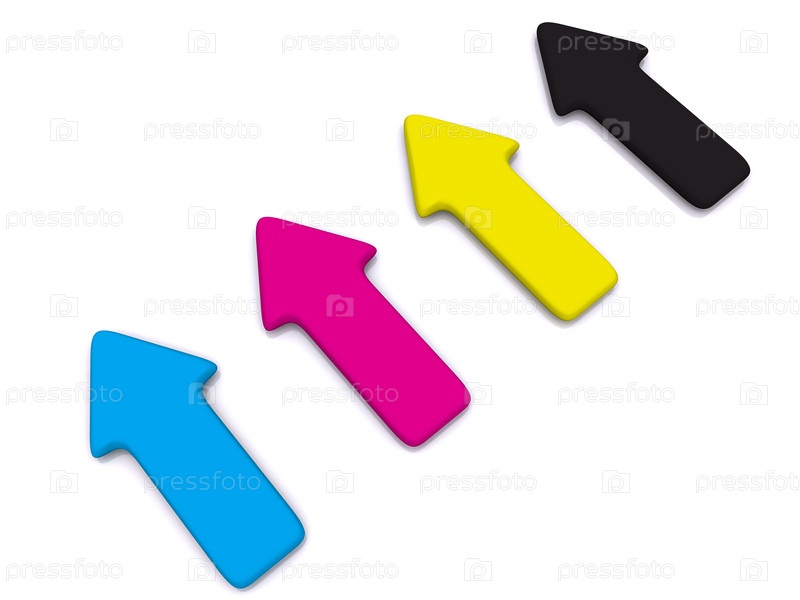 Четыре стрелки разных цветов в одном направлении на белом фоне