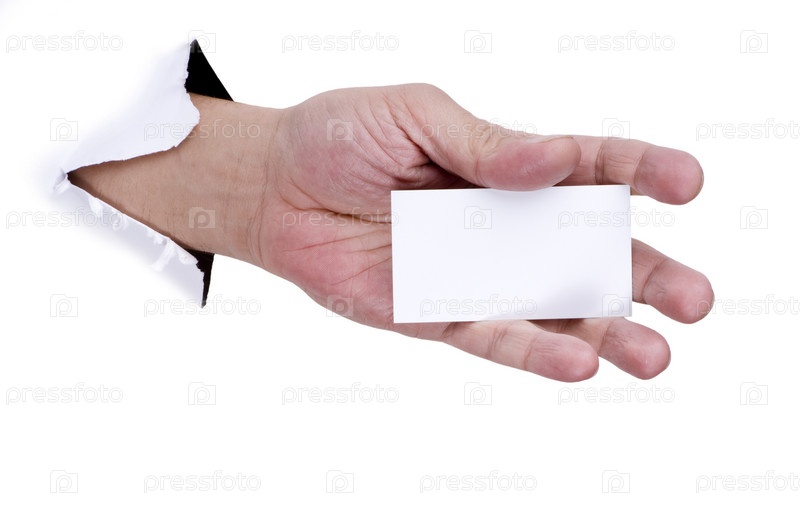 Рука с пустой визиткой в бумажном отверстии