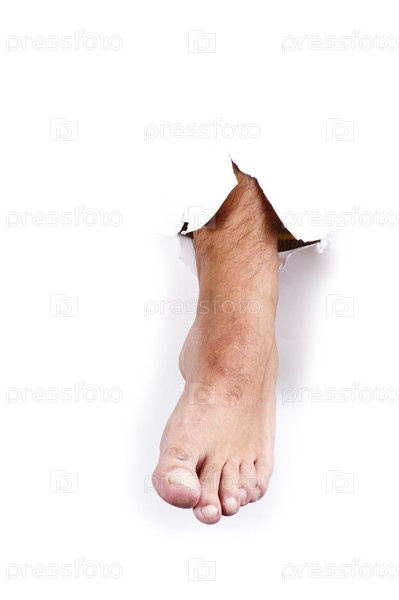 Нога в бумажном отверстии