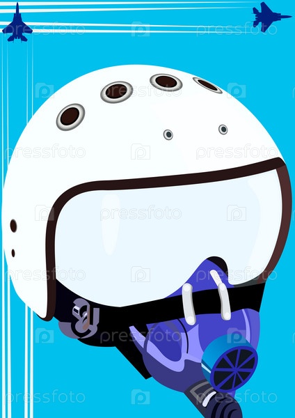 Авиационный шлем с истребителями на голубом фоне