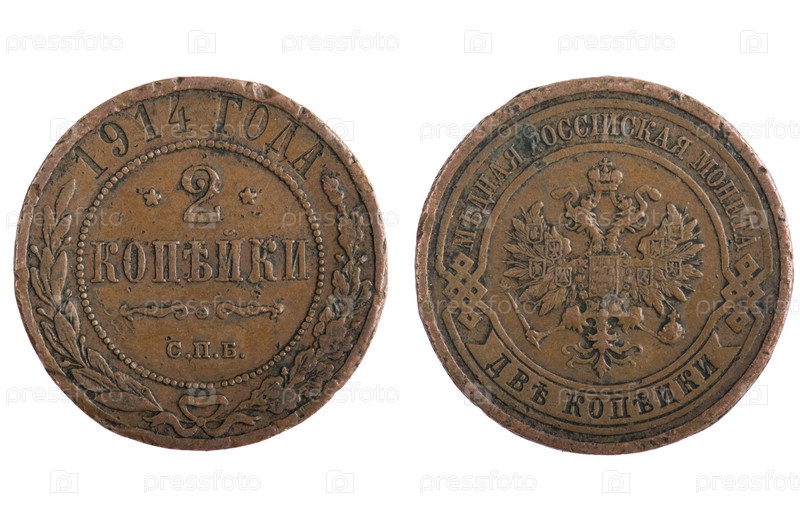 Старые монеты Российской империи на белом фоне