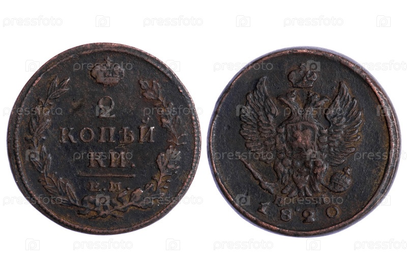 Старые монеты Российской империи на белом фоне