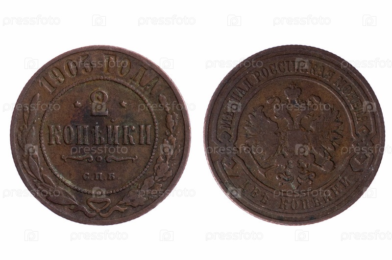 Старые монеты Российской империи на белом фоне