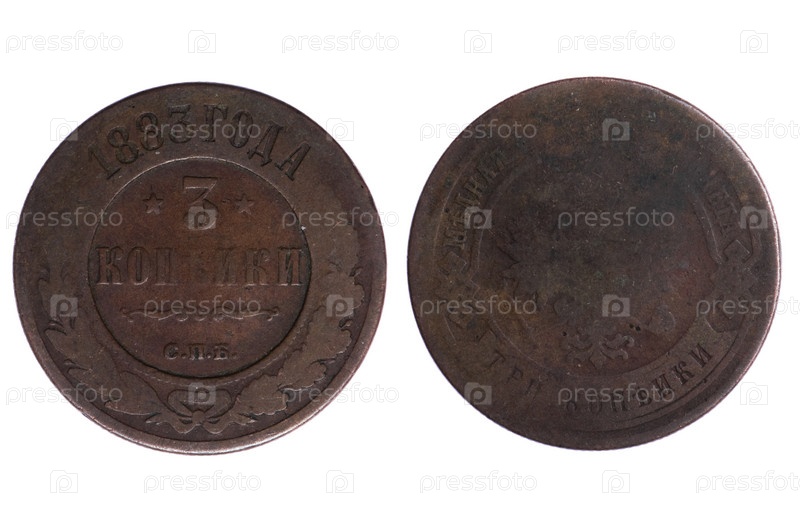 Старые монеты Российской империи на белом фоне