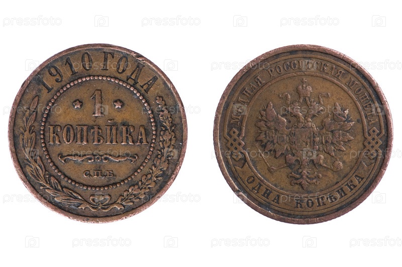 Старые монеты Российской империи на белом фоне