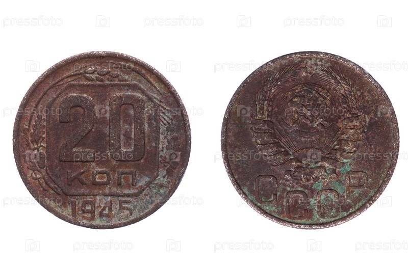 Старые монеты России на белом фоне
