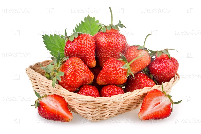 Клубника в плетеной корзине на белом фоне