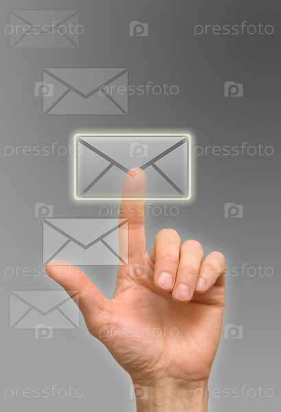 Рука нажимает иконку письма