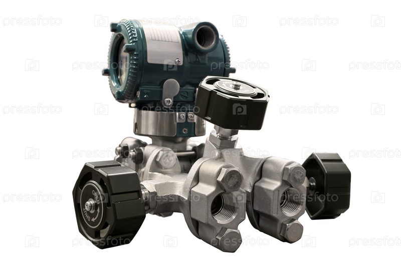 Датчик дифференциального давления. Близкий план. Изолированный на белом фоне