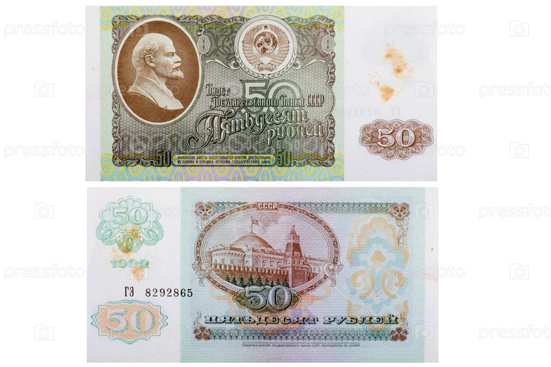 Старые бумажные деньги России на белом фоне