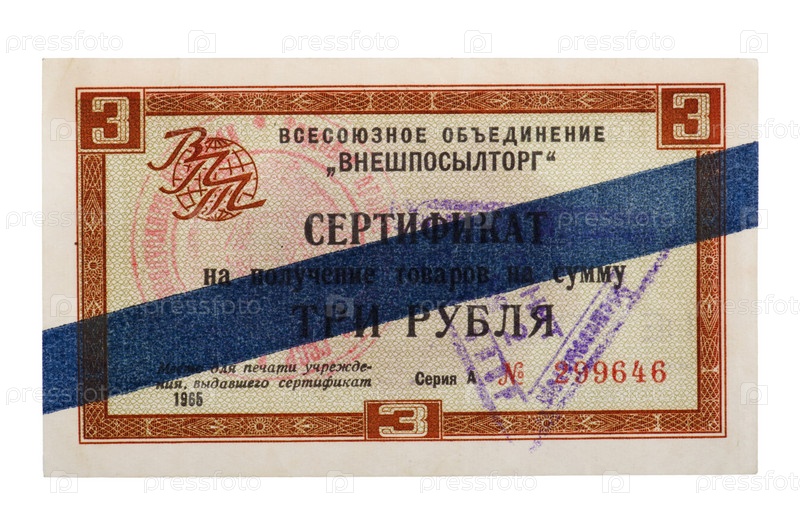 Сертификат на 3 рубля на белом фоне