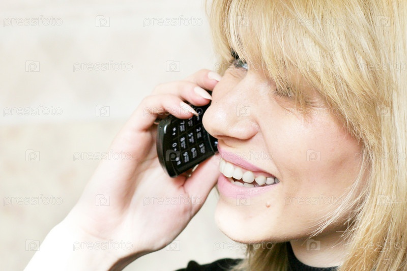 Портрет молодой девушки, разговаривающей по сотовому телефону