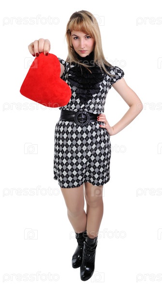 Девушка держит красное сердце в руке