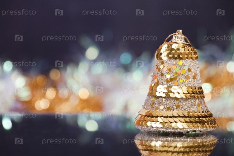 Новогодний колокольчик на фоне мерцающих ночных огней
