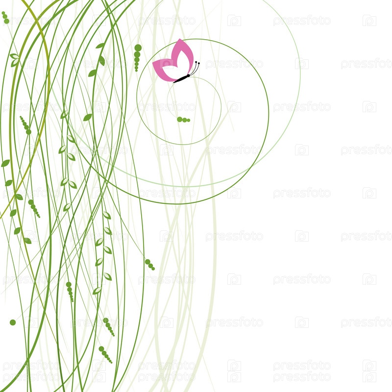 Абстрактный фон с растительным узором и бабочкой