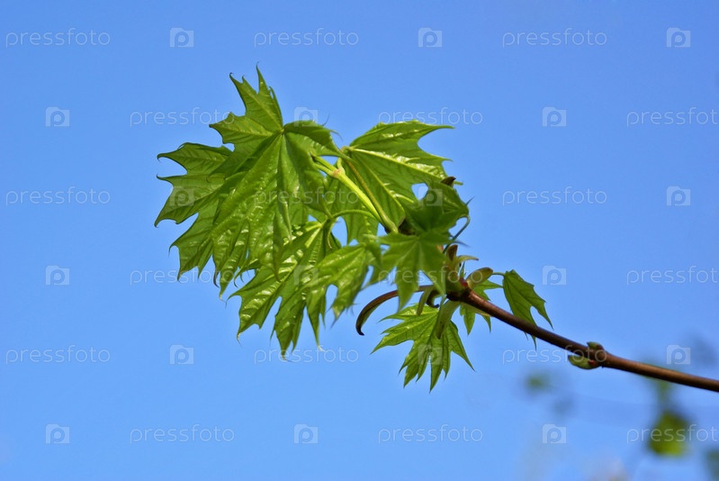 Кленовая ветвь с зелеными листьями