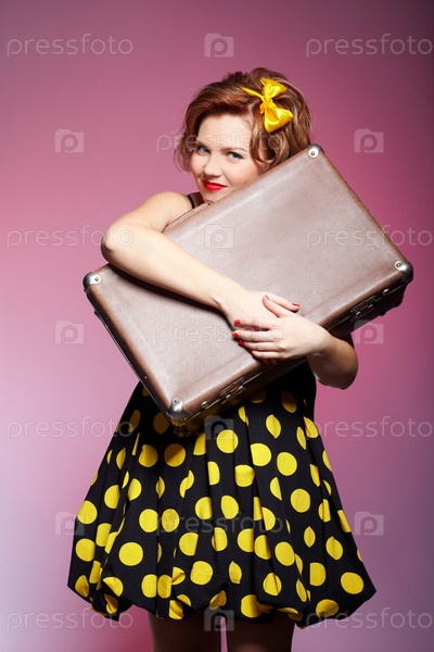 Девушка с чемоданом, одетая в ретро стиле