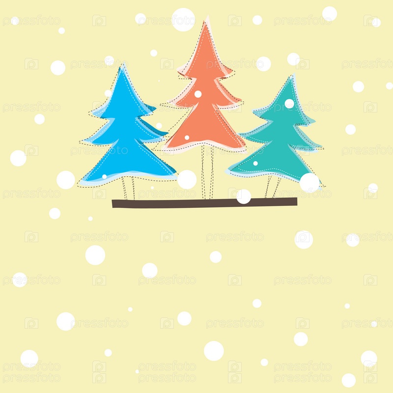 Рождественская открытка с цветными деревьями