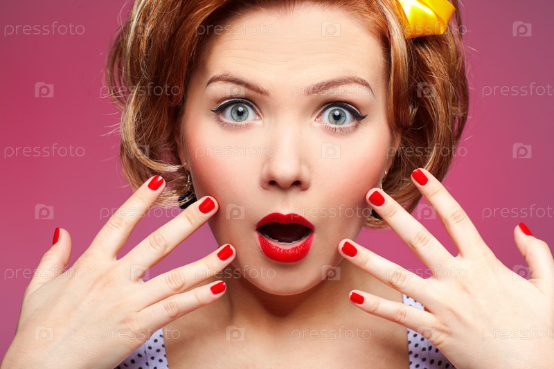 Удивленная девушка, одетая в ретро стиле