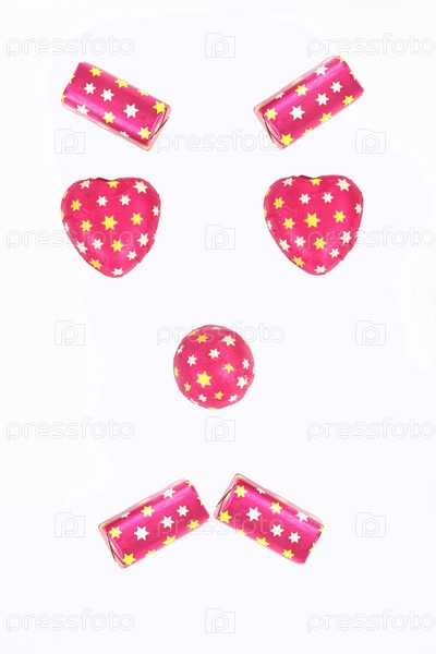 Лицо из конфет на белом фоне