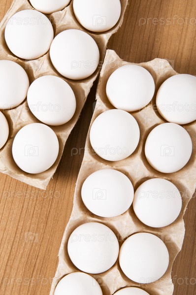 Белые куриные яйца на деревянном столе