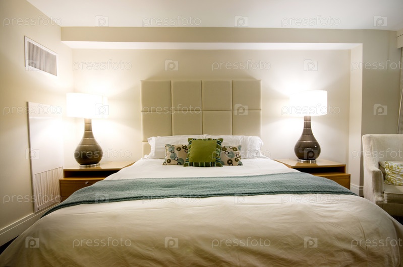 Большая двуспальная кровать в современном интерьере