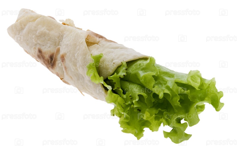 Лаваш с салатом на белом фоне