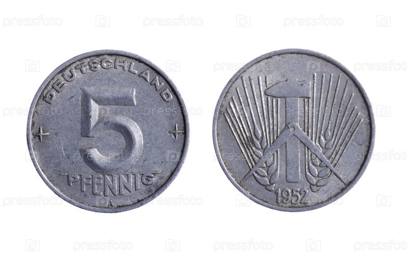 Немецкие монеты на белом фоне