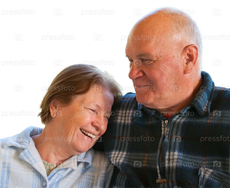 Пожилые муж и жена на белом фоне
